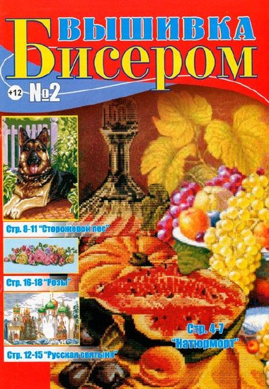 Журнал о вышивке бисером с цветными схемами. Номера цветов не даны, это дает простор для творчества и делает вашу работу неповторимой, также эти схемы можно вышивать и мулине. В номере схемы для вышивки: "Сторожевой пес", "Розы", "Русская святыня", "Натюрморт", "Коллаж", "Дельфины", "Сладкая парочка". |