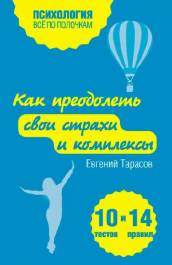 Книга известного психолога и психотерапевта Е. Тарасова поможет вам понять, откуда берутся наши страхи и комплексы, узнать, почему мы не всегда отдаем себе отчет в них, определить, какие страхи и комплексы мешают именно вам, научиться преодолевать их без посторонней помощи и не ломая себя, стать уверенным, спокойным, успешным человеком. |